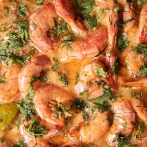 • In a separate pot, boil shrimp until done then add to the sauce. Top with the remaining cilantro.