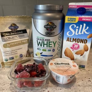 - 1 scoop low sugar vanilla protein powder
